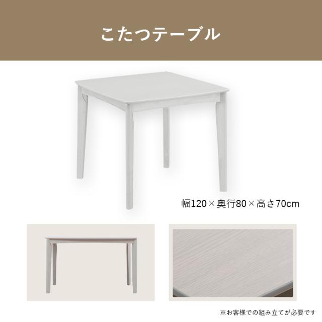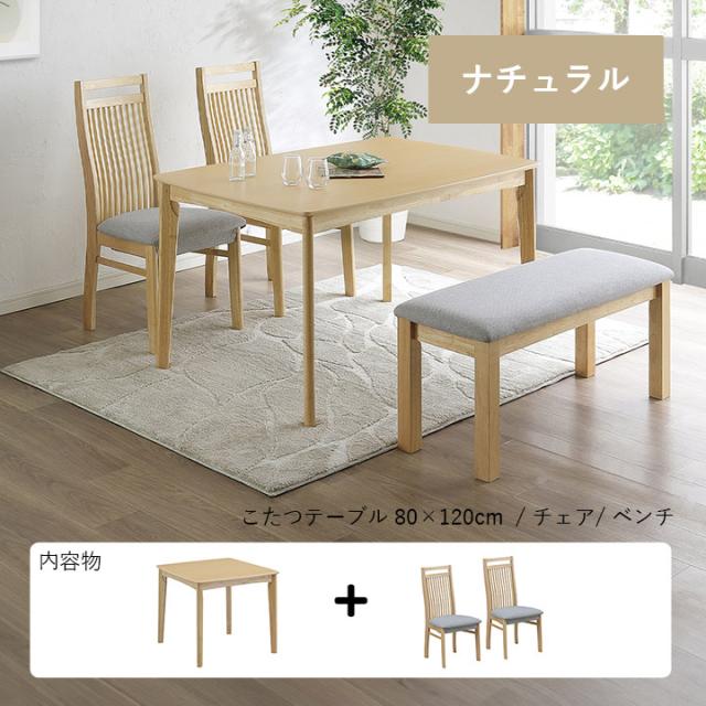 ■ ダイニングこたつ台 単品 80×80×70cm ■ ダイニングこたつ台 単品 80×120×70cm ■ チェア 2脚セット ■ ベンチ 単品 ■ ダイニングこたつ台 80×80×70cm + チェア 2脚セット ■ ダイニングこたつ台 80×120×70cm + チェア 4脚セット ■ ダイニングこたつ台 80×120×70cm + チェア 2脚 + ベンチセット |