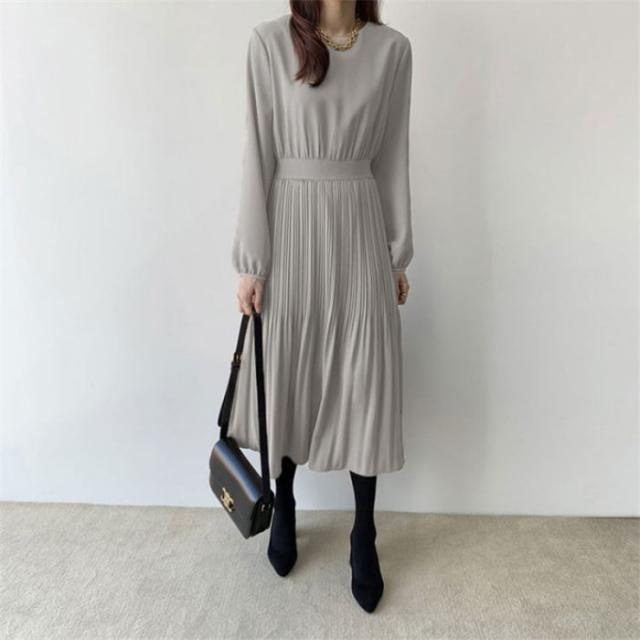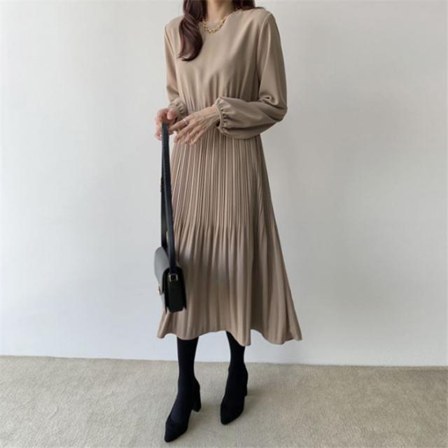 ワンピース レディース 秋 春 プリーツ マキシワンピース ロングワンピース ママスーツ ゆったり おしゃれ 30代 40代 50代 体型カバー