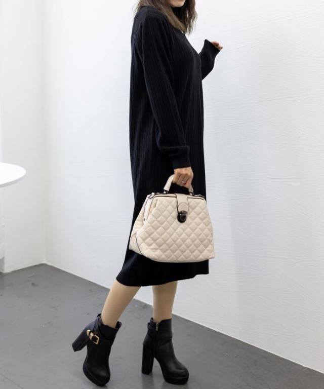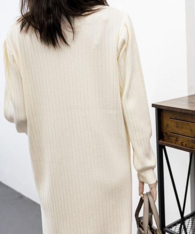 立体感のあるリブ生地を使用、体のラインを拾わず体型カバーするニットワンピース