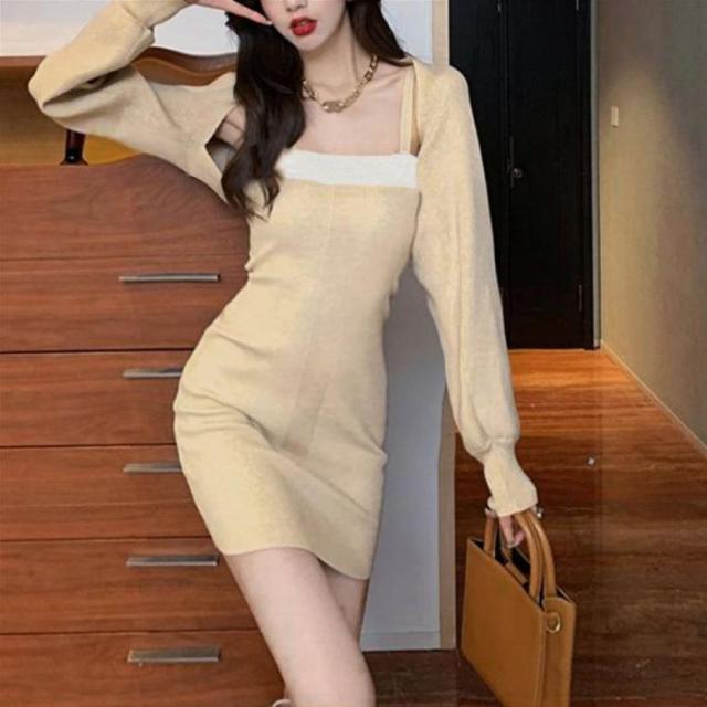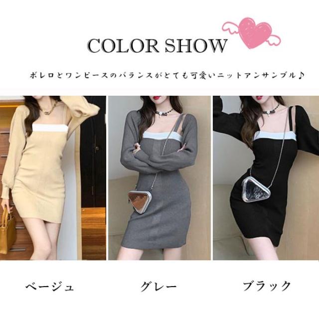 ニットボレロ ミニワンピースセットアップ 大人気 秋服 レディース
