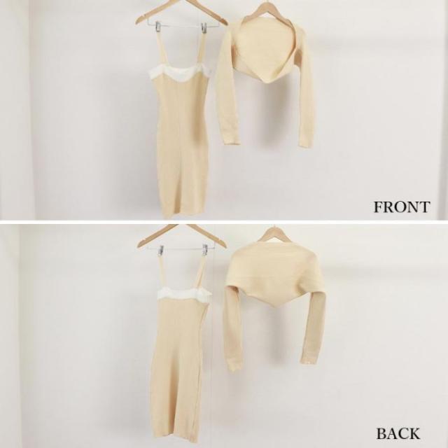 ボレロとワンピースのバランスがとても可愛いニットアンサンブル