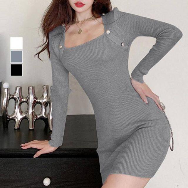 ニットワンピース リブ タイト 長袖韓国 ワンピース 大人っぽい セクシー