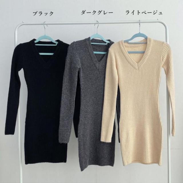 レディース Vネック タイトワンピース 大人カジュアル セクシーワンピース きれいめ重ね着ワンピ 着やせ セータードレス