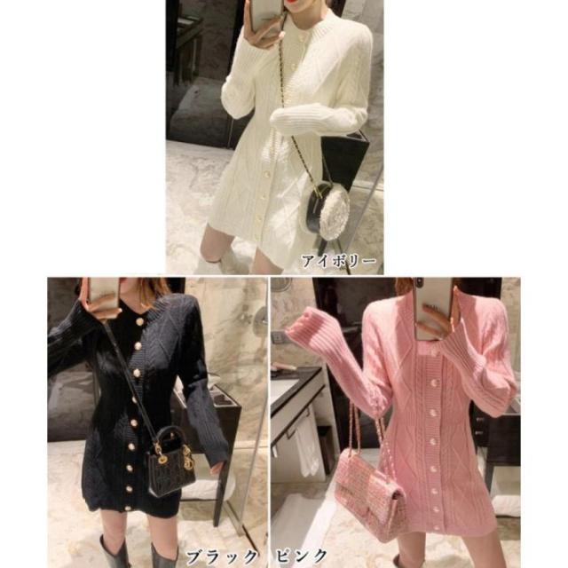 ケーブルニットワンピース ミニ きれいめ シンプル 体型カバー
