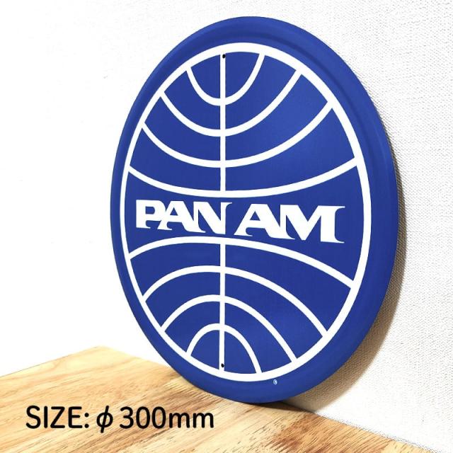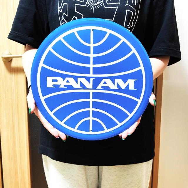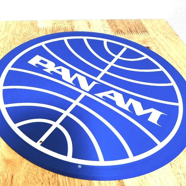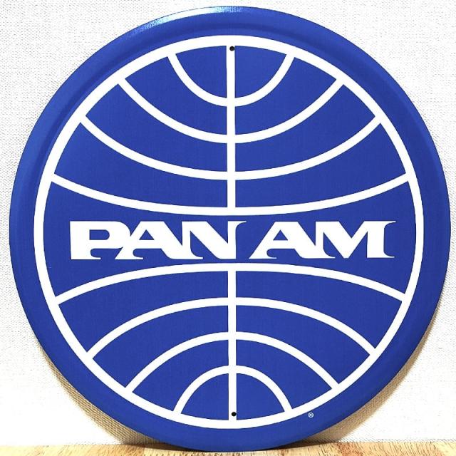 アメリカの航空会社、パンナム(パンアメリカン航空)のロゴデザインの丸型ブリキ看板です。