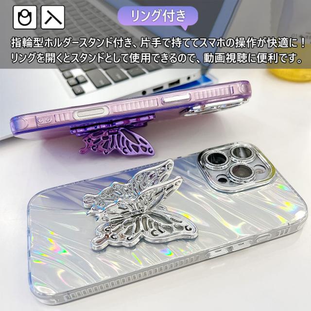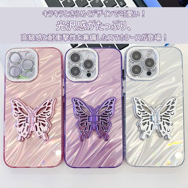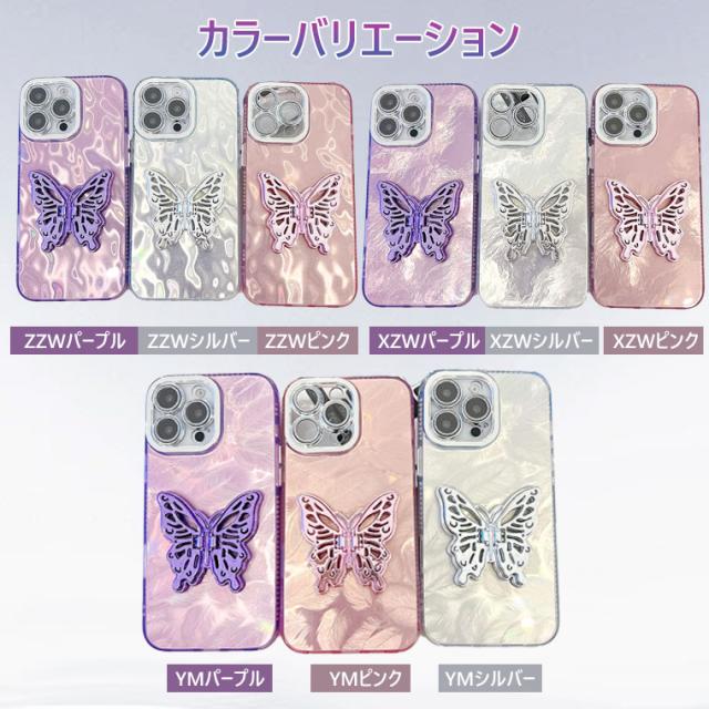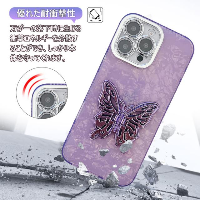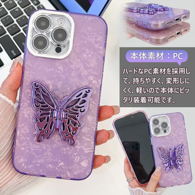 【貝殻風】 iPhone 16 Pro ケース 蝶々 スタンドホルダー付き キラキラ iPhone 15 ケース おしゃれ iPhone16 ケース カメラレンズ保護 iPhone15 Pro Max スマホケース iPhone14 アイフォン 16promax カバー 耐衝撃 かわいい 可愛い オシャレ IMD スマホカバー
