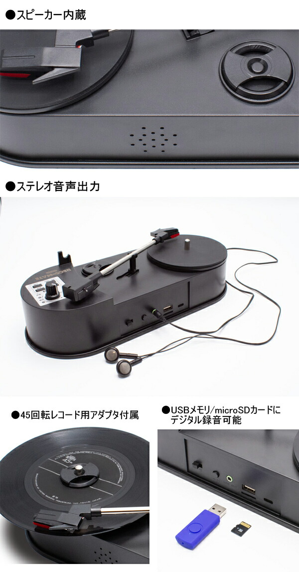クマザキエイム Bearmax どこでもレコードプレーヤー レコメイト PTT-03K/font>