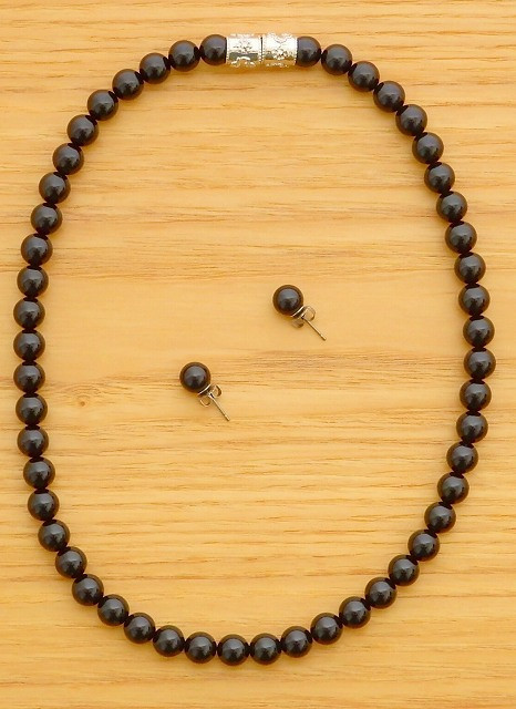 ↑ネックレス・ピアス画像。 8ミリの標準サイズ。 |