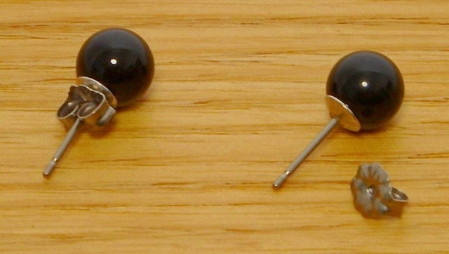 ↑ピアス画像。 ネックレスと同じ8ミリのオニキスを使用。 |