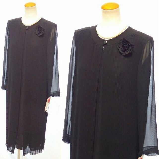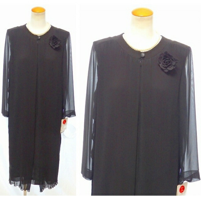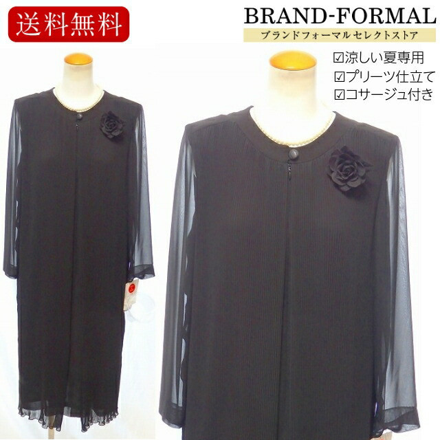 日本製 グッドプライス 高品質 フォーマル サマーフォーマル 夏物 コサージュ付き シフォン素材 ゆったり プリーツ ワンピース
