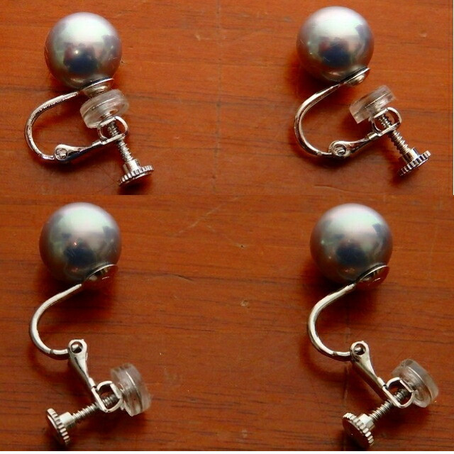 ↑イヤリング画像。 ネックレスと同じ10ミリの貝パールを使用。 |