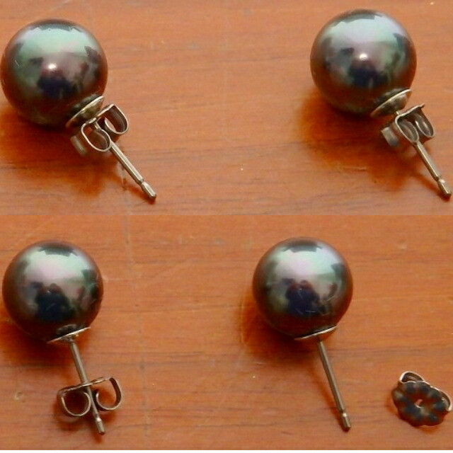 ↑ピアス画像。 ネックレスと同じ10ミリの貝パールを使用。 |