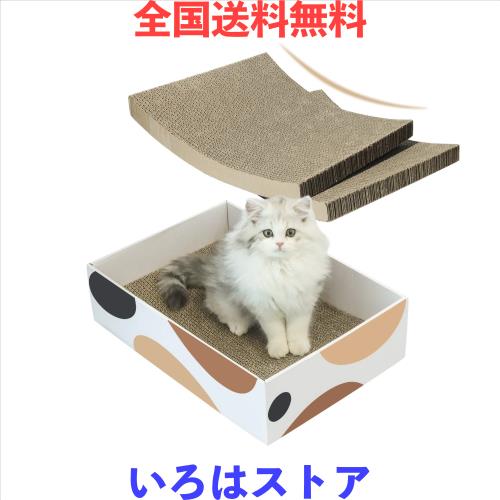 ?【3枚セットつめとぎ】箱のサイズ:43×30×11.6cm;爪研ぎ1枚のサイズ:41X28.5X3cm(幅X奥行X高さ);適応猫の体重:5kgまで。大きめの成猫でものんびりできるサイズです。猫は本能的に凹面でリラックスしたり、凸面で爪研いだりします。その為、猫のいろんなニーズを満足できます。猫爪とぎだけでなく、猫 ベッド・猫ソファーとしても使えます。一台3役です。猫が思い存分ガリガリし放題、運動不足改善にも役立ちます。