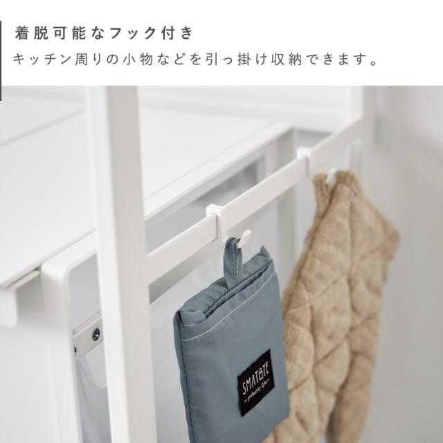 付属のフックにはキッチン周りの小物を掛けることができます。
