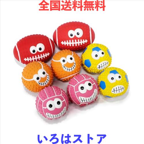 【子犬・小型犬・中型犬向け・可愛いボール8点セット】:8点セット(4色8ボール)、多様な表情のボールの形のデザイン,遊びながら飼い主に表情を知る訓練こともできます。こののおもちゃのサイズは7cm×7cm×7cm(ラグビーデザインだけのサイズは7cm×7cm×9cm)ので,子犬/小型犬/中型犬の口の形に適します。子犬/小型犬/中型犬は大活躍します。