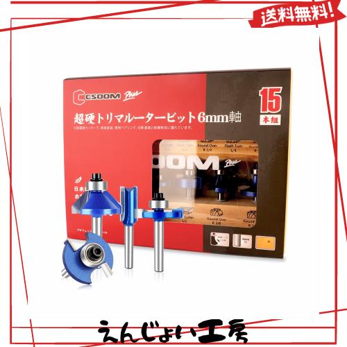 CSOOM Pro プロ木工トリマービットセット 超硬ルーターセット プレミアムモデル15本組 軸径6mm 窓木製収納ケース付き 溝ほり・面取り・飾