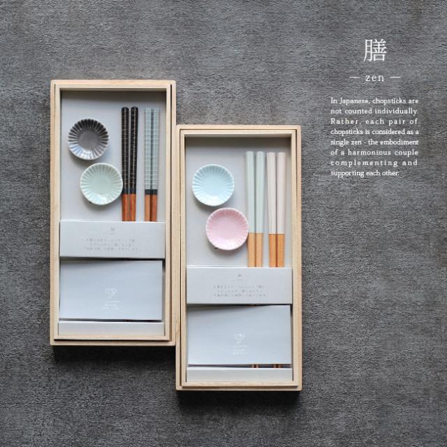 波佐見焼のお茶碗と、天然竹を使用したお箸のギフトセットです。