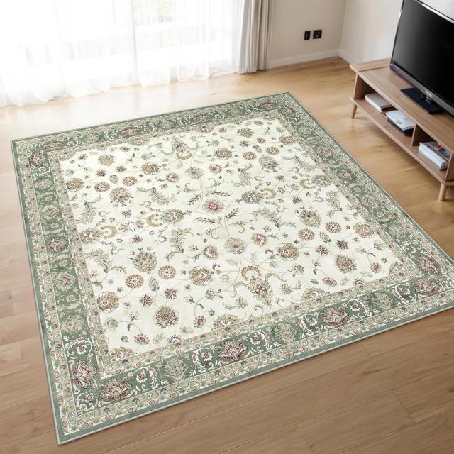 カーペット 夏 2畳 正方形 185х185cm ラグ 洗える オールシーズン適用 ペルシャ風 じゅうたん 滑り止め 低反発 防音 寝室 リビング ラグマット 抗菌防臭 耐磨耗性 花柄 グリーン