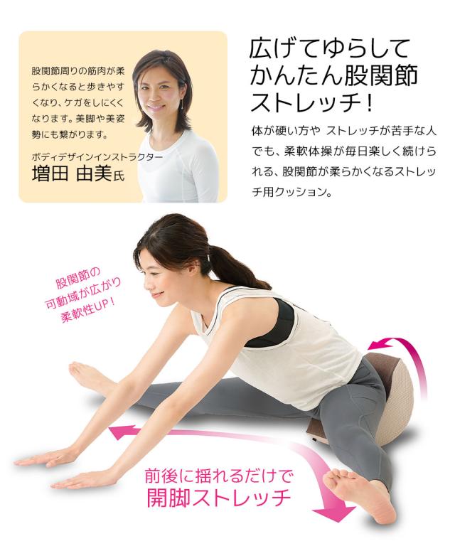 体が硬い方や ストレッチが苦手な人でも、柔軟 体操が毎日楽しく続けられる、股関節が柔らかくなるストレッチ用クッションです!