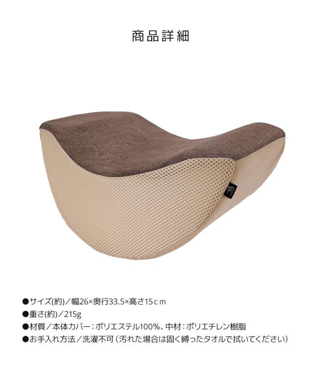 クッションの底面が丸みを帯びていることによってゆらゆら股関節ストレッチがしやすく、天面のくぼみにお尻がフィットするのでずれにくい三日月型クッションの形状!