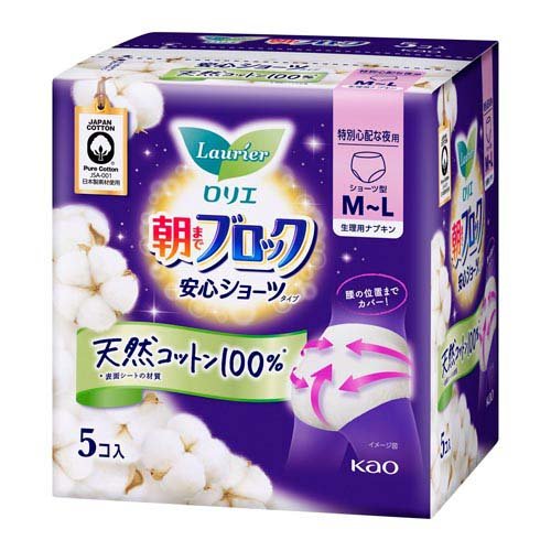 ロリエ朝までブロック 安心ショーツ 天然コットン100% M-L(5個入)[生理用品 その他]