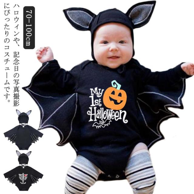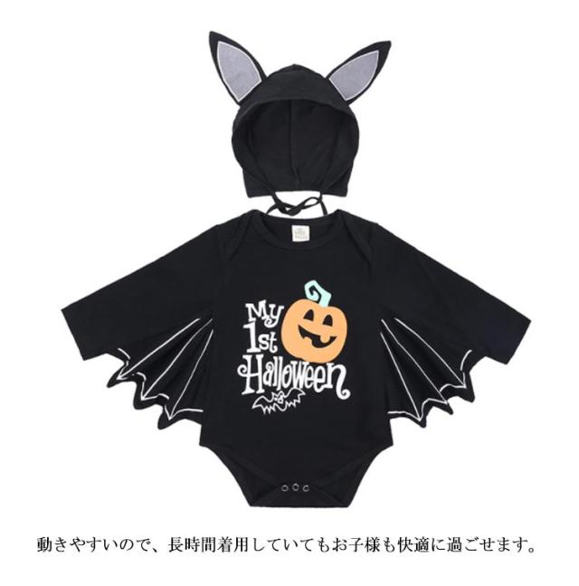子供服 ハロウィン ロンパース 帽子付き マント 仮装 ベビー服 カバーオール 男の子 女の子 新生児 赤ちゃん 可愛い コウモリ 変装 コスプレ衣装 ボディスーツ コスチューム パーティー 記念撮影 Cosplay 送料無料