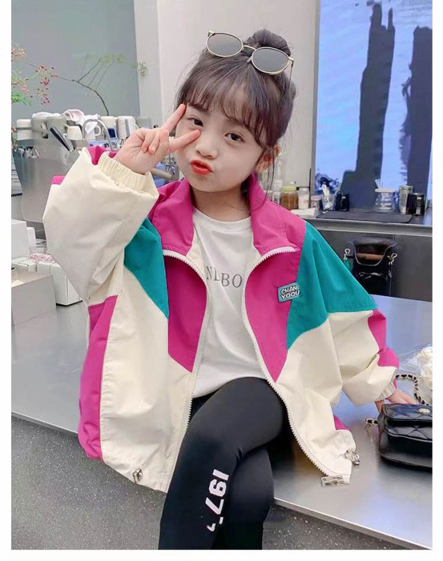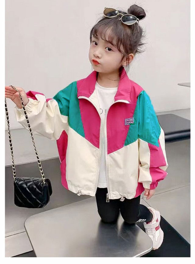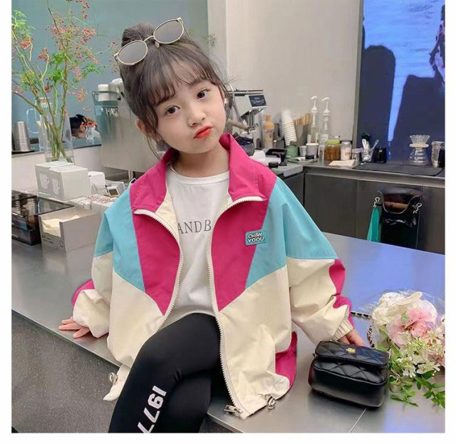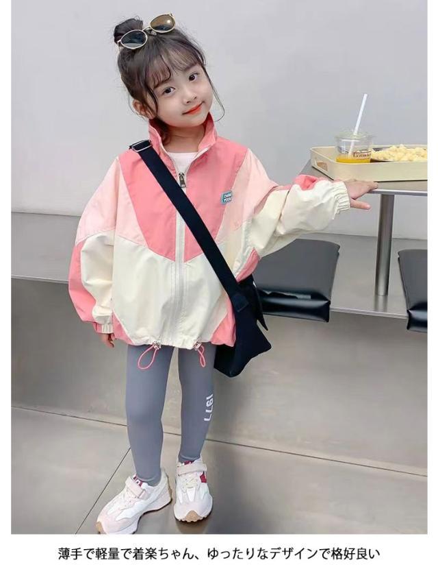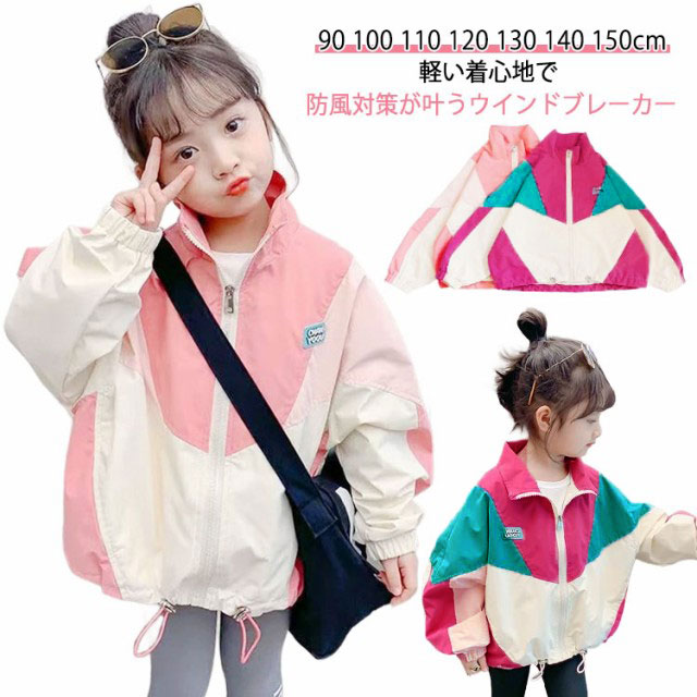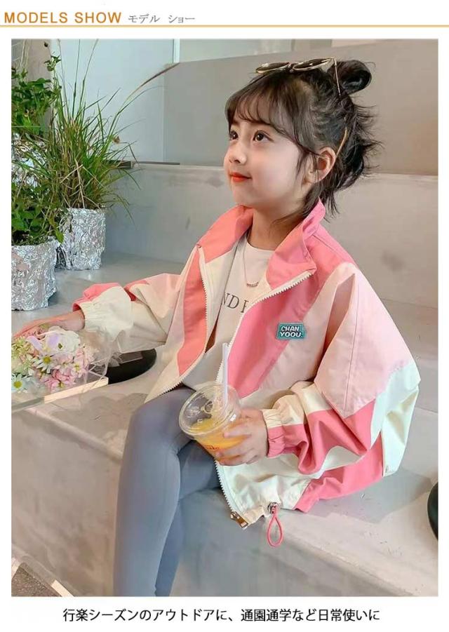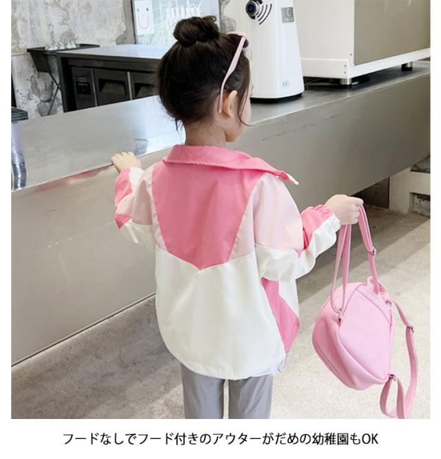 ウィンドブレーカー キッズ 女の子 ブルゾン フードなし ジャケット ジャンパー マウンテンパーカー 色切り替え ナイロンジャケット スポーツ アウター 子供服 防風 秋 冬 薄手 秋コート 春アウター 秋服 秋物 韓国子供服 送料無料