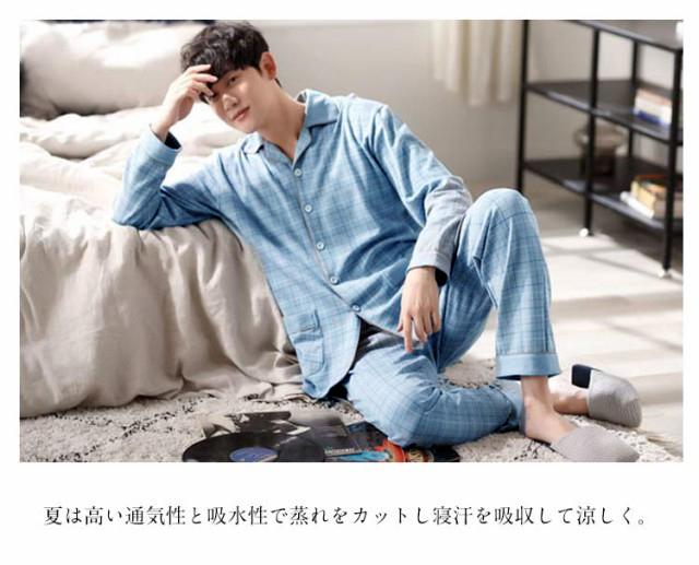 寝巻き パジャマ メンズ 長袖 春 秋 前開き チェック柄 薄手 Tシャツ 長ズボン 2点セット ルームウェア 上下セット 綿 コットン ナイトウェア 入院 男性 紳士 部屋着 ルームウェア 入院 ロングパンツ リラックスウェア 大きいサイズ 父の日 ギフト 敬老の日 送料無料