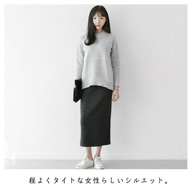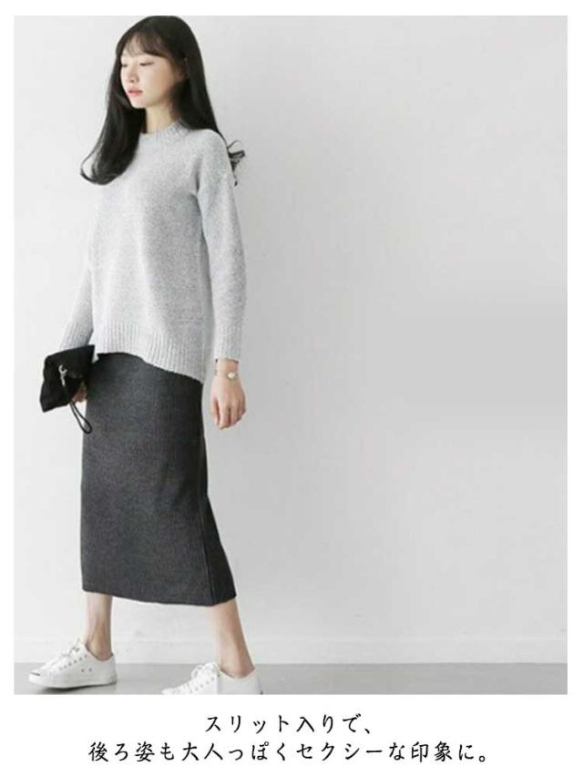 | カジュアルにもきれいめにも使えるニットスカート。 程よくタイトな女性らしいシルエット。 ストレッチ性抜群のリブニット素材で、動きやすい。 スリット入りで、後ろ姿も大人っぽくセクシーな印象に。 ウエストゴムがお腹周りもノンストレス! 流行に左右されないシンプルなデザインで、長く愛用出来ます | |