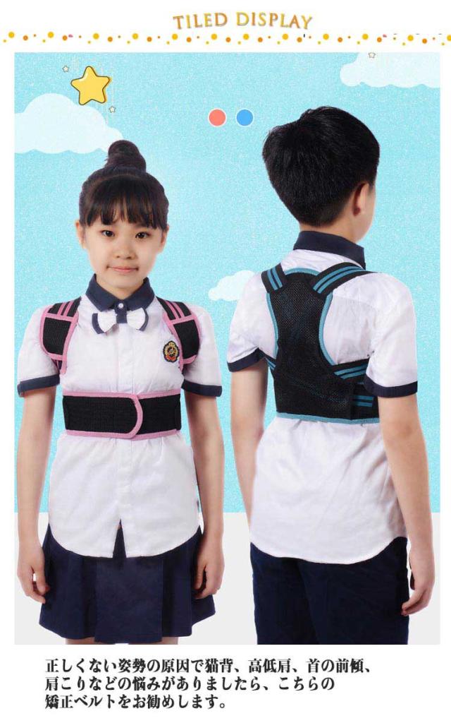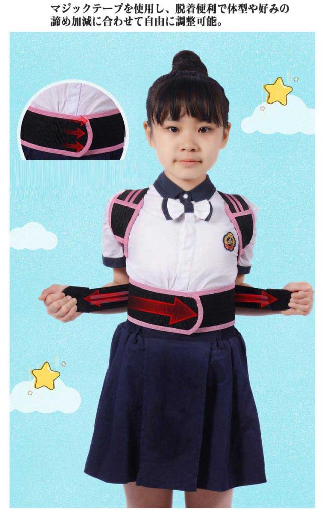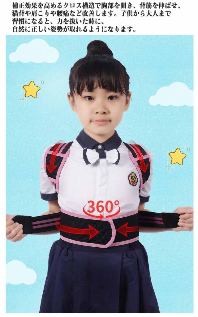 | 1日2時間のながら補正で美しい姿勢を手に入れましょう。【対象年齢3-18歳】 正しくない姿勢の原因で猫背、高低肩、首の前傾、肩こりなどの悩みがありましたら、こちらの矯正ベルトをお勧めします。 補正効果を高めるクロス構造で胸部を開き、背筋を伸ばせ、猫背や肩こりや腰痛など改善します。子供から大人まで習慣になると、力を抜いた時に、自然に正しい姿勢が取れるようになります。 締め付けがきつくないので負担が少なく、着け心地が向上しました。 メッシュ素材で、通気性と快適性が向上します。マジックテープを使用し、脱着便利で体型や好みの諦め加減に合わせて自由に調整可能。 ベルトをつけることで正しい姿勢を体感でき、子供の頃からより正しい姿勢を身に着ける事が期待できます。 洗濯機丸洗いOK!洗濯は手洗い後がお勧めですが、洗濯機の場合はマジックを閉めて洗濯ネットに入れ洗い、通気のいい場所で影干にて乾かしてください。 | |