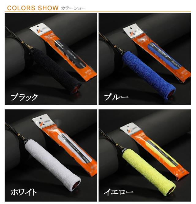 バドミントン タオルグリップ バドミントン グリップ タオルグリップ 3本入り吸水性に優れる綿 抗菌加工で清潔快適!グリップ ブラック ブルー ホワイト イエロー レッド パープル オレンジ グリーン ピンク