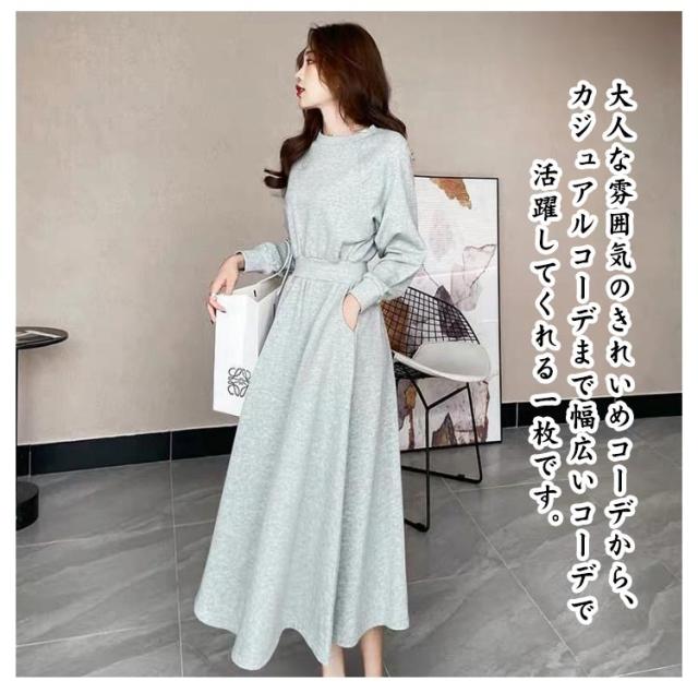 ワンピース レディース 春秋 パーカーワンピース ロングワンピース 長袖 ロングワンピ トレーナー スウェット ウエストマーク きれいめ ワンピース 着痩せ カジュアル スタイルUP 普段着