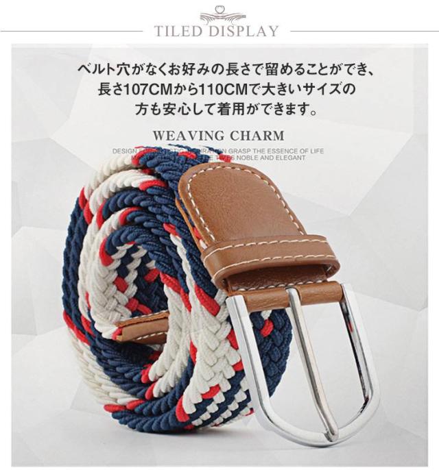| 伸縮性のあるアクリル紐が編み込まれたストレッチベルトです。 ベルト穴がなくお好みの長さで留めることができ、長さ107cmから110cmで大きいサイズの方も安心して着用ができます。 伸縮性のある素材と編み込み方法により、ベルトの本体が伸び縮みすることで、胴回りが小さい女性にも、メンズ・レディース関係なく、ユニセックス フリーサイズで使用頂けます。 | |