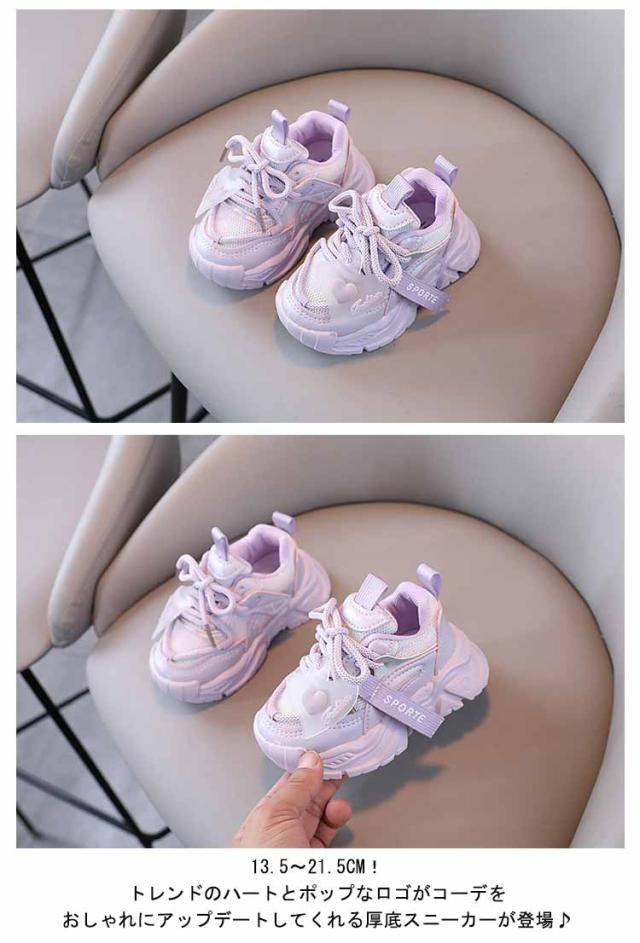 キッズ スニーカー 厚底 男の子 女の子 ダッドスニーカー 運動靴 ハート 子供 ジュニア 13.5〜21.5cm おしゃれ 幼児 小学生 通学靴 軽量 通気性 ランニングシューズ 子ども ヒップホップ ダンスシューズ カジュアル 脚長 子供靴 送料無料