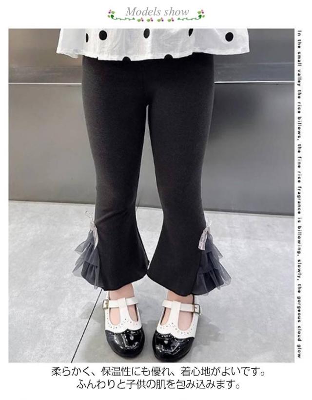 レギンス キッズ 春 秋 フレアパンツ 女の子 レギンス パンツ スパッツ 子供服 ボトムス 裾フレア パンツ キッズ ボトムス ウエストゴム ストレッチ インナーパンツ ロングパンツ 無地 薄型 部屋着 保育園 旅行 プレゼント