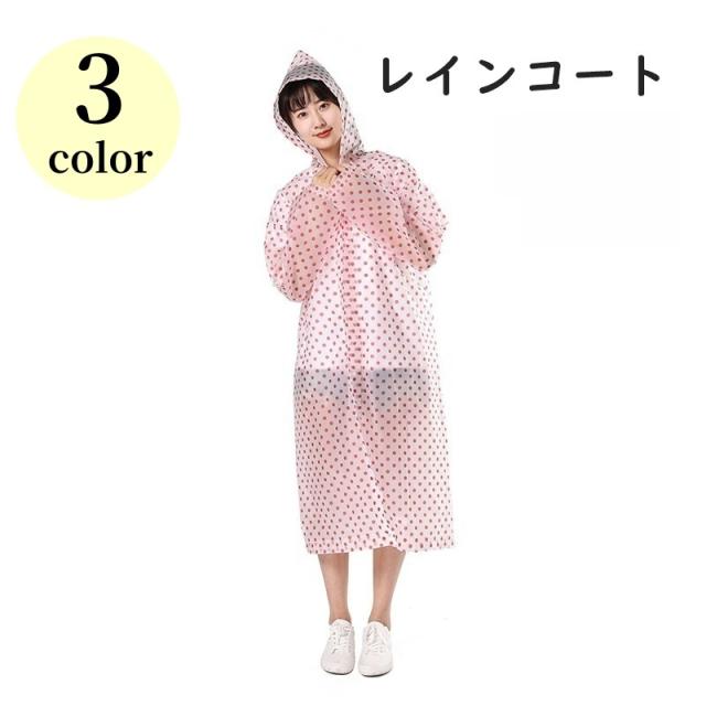 レインコート レディース 女性 レインウェア フード付き 前開き ロング ドット柄 かわいい おしゃれ 雨 梅雨 通勤 通学