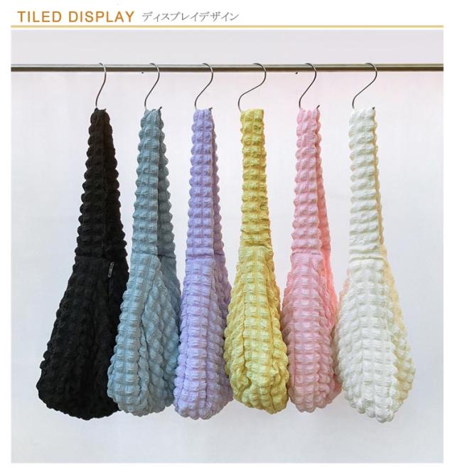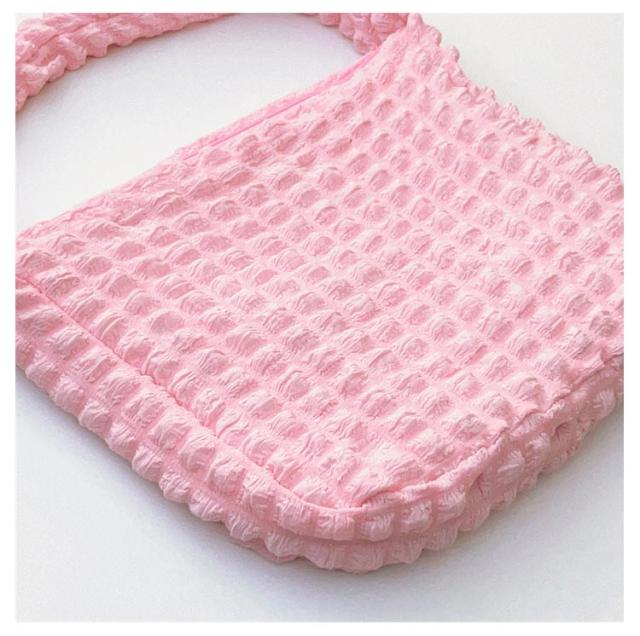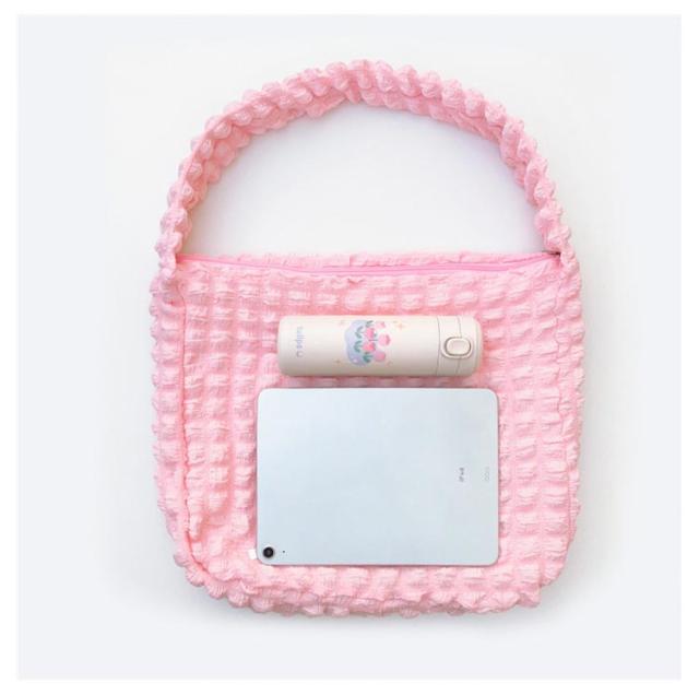 | A4サイズも余裕!オールシーズン使えるショルダーバッグ ポコポコしたポップコーンバッグはまるで曇のように柔らかで肌触りよく、 季節問わず通年使えるシーズンレスなバッグです。 大容量のショルダーバッグ型、ファスナーでの開閉や内ポケット付、A4サイズなので利便性抜群。 通勤や通学バッグ、マザーズバッグ、オタ活など様々な場面で大活躍♪ | |