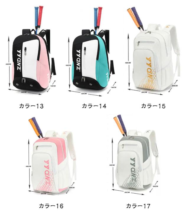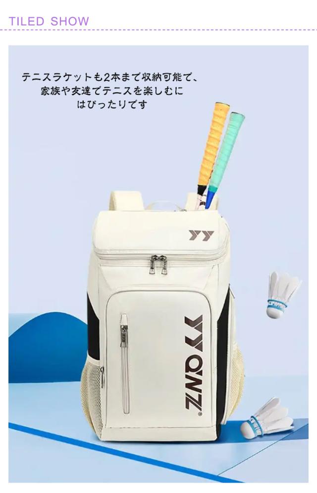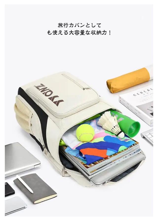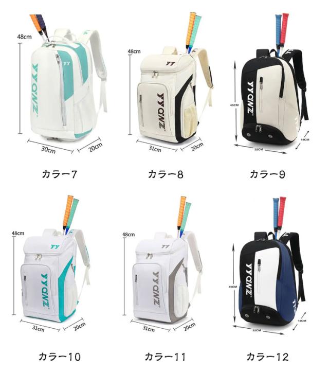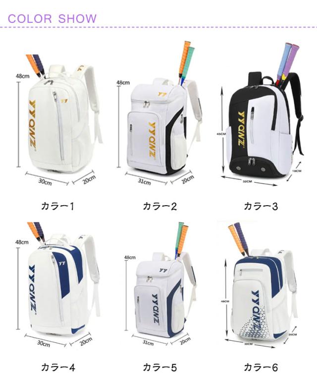 | 全17色、便利な大容量と多機能ラケットリュック! 旅行カバンとしても使える大容量な収納力! テニスラケットも2本まで収納可能で、家族や友達でテニスを楽しむにはぴったりです | |