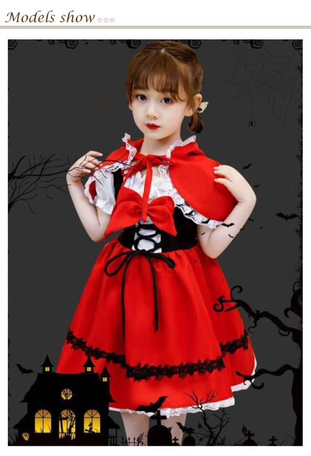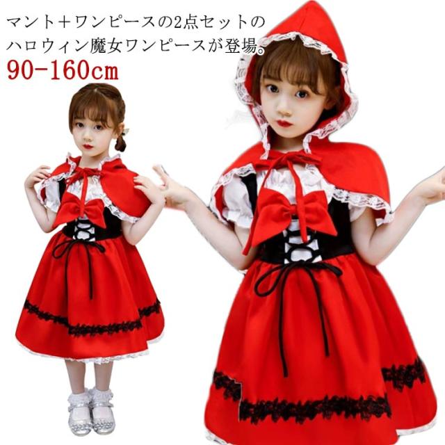 クリスマス ハロウィン コスチューム 衣装 子供 女の子 コスプレ 仮装 お姫様 キッズ 子供ドレス ケープ 子供服 ワンピース プリンセス 魔女 童話 発表会 演出 文化祭 学園祭 赤 パーティー ドレス 子供用 子ども 幼稚園 100-160cm