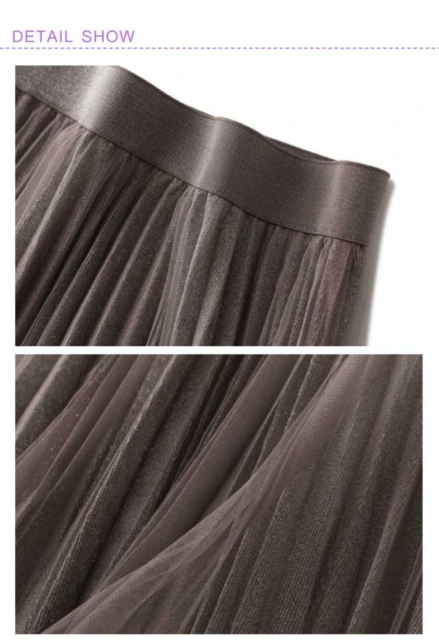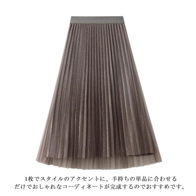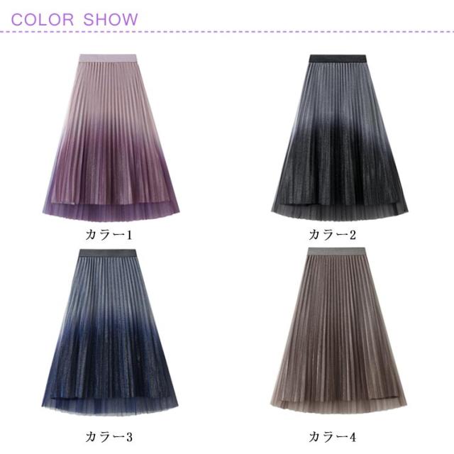 キラキラ スカート グラデーション チュールスカート Aライン プリーツスカート フレアスカート フェミニン ハイウェスト ウェストゴム ゆったり お呼ばれ エレガント かわいい おしゃれ 体型カバー