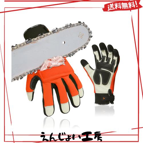 [Vgo...] チェーンソー手袋 作業用手袋 牛革レザー掌部 メカニックグローブ 山仕事 伐採 草刈り 両手甲に12層チェーンソー布 切断防止機