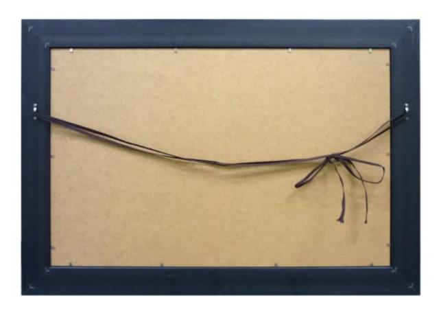 フレームに吊り金具がついているので付属の紐を結び、壁側金具に掛けてご使用ください。
