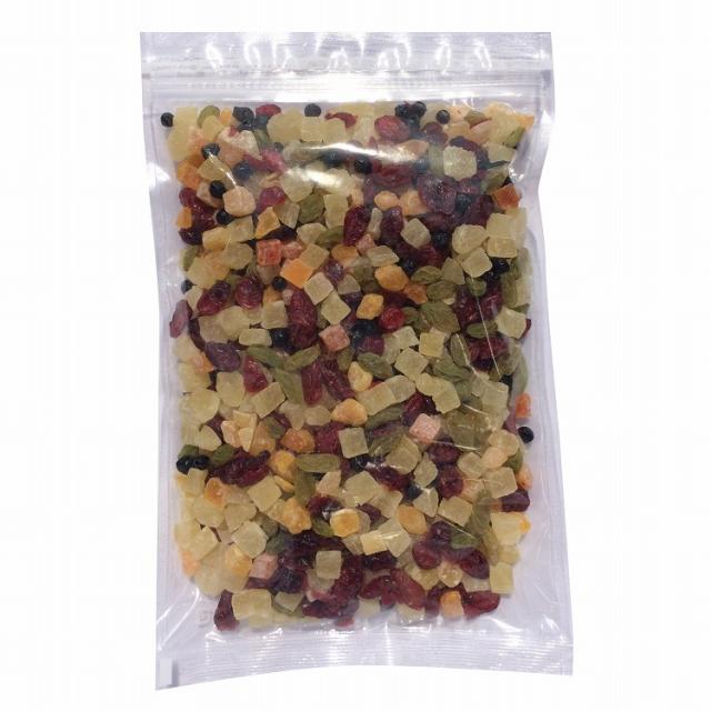 (パイナップル:タイ産、パパイヤ:タイ産、マンゴー:タイ産、レーズン:中国産、クランベリー:アメリカ産、ブルーベリー:アメリカ産 )