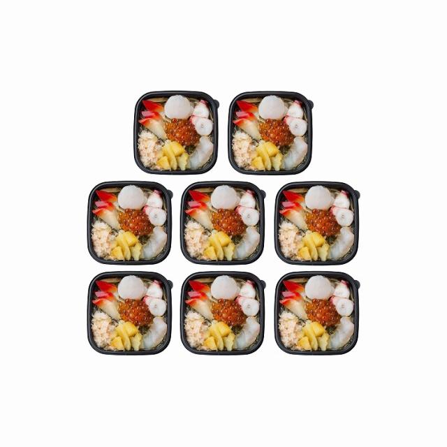 松前漬(いか、醤油、砂糖、還元水飴、昆布、発酵調味料、その他)(国内製造)、ほたて、ひらめ、いくら醤油漬(鮭卵、醤油調味液)、ホッキ、ズワイガニフレーク(ズワイガニ、食塩)、魚卵醤油漬(トビ魚卵、数の子、醤油、その他)、調味たこ(たこ、醤油調味液)、めかぶ、味付数の子/酒精、調味料(アミノ酸等)、増粘多糖類、pH調整剤、トレハロース、ソルビトール、乳酸Na、酸味料、カラメル色素、甘味料(ステビア)、(一部にいか・小麦・大豆・いくら・かに・乳成分を含む)