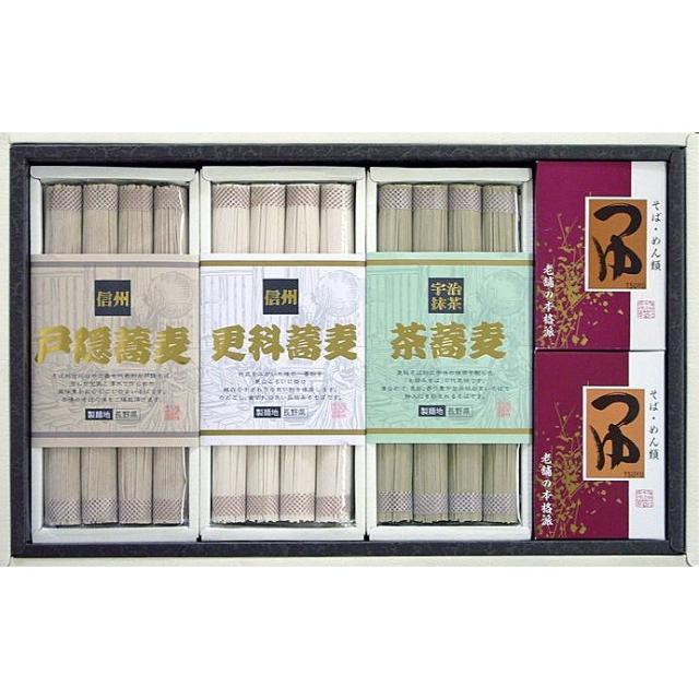 信州戸隠蕎麦100g×4、信州更科蕎麦100g×4、信州茶蕎麦100g×4、つゆ 50ml×4×2