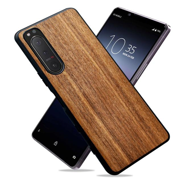 MQman Xperia5ii SO-52A SOG02 ケース 木製カバー 胡桃の木 原木 素材 エクスペリア天然木 耐衝撃 ソフト クルミ ワイヤレス充電対応 (Xp