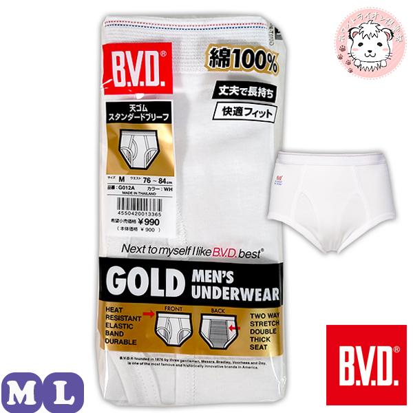 B.V.D. GOLD 綿100% 天ゴム スタンダード ブリーフ G012A M/L | フライス 無地 メンズ 前あき 下着 肌着 パンツ bvd BVD ビーブイディー ゴールド