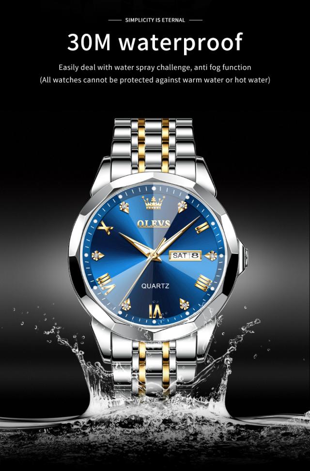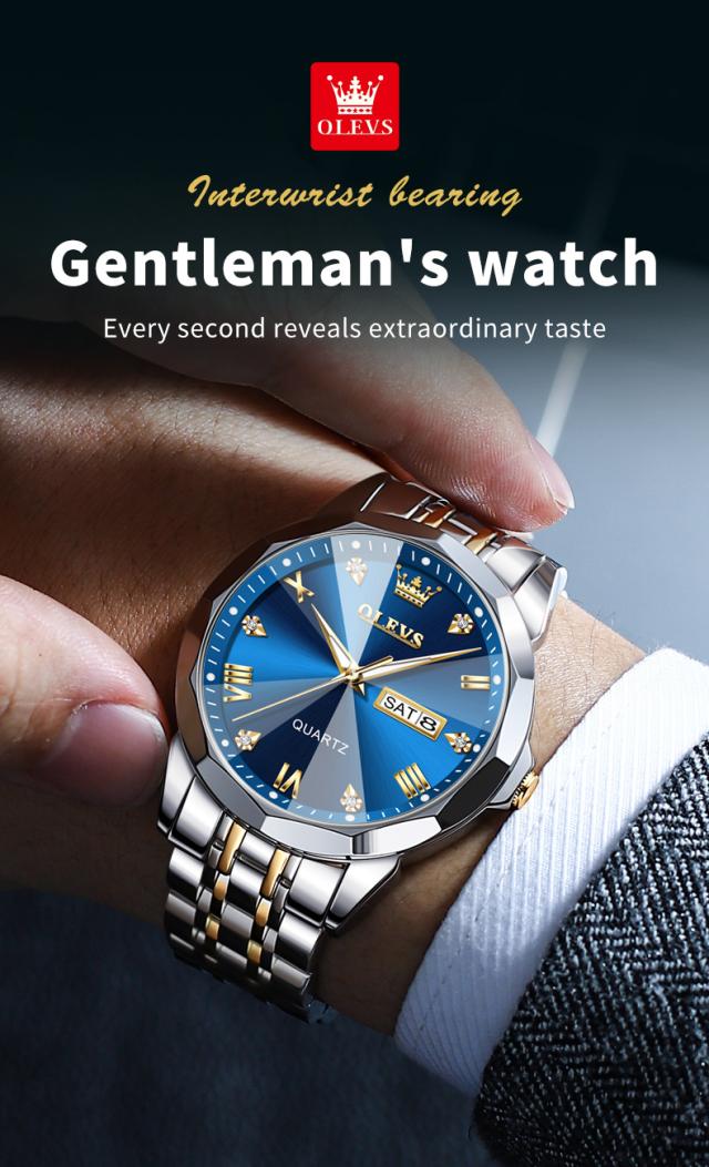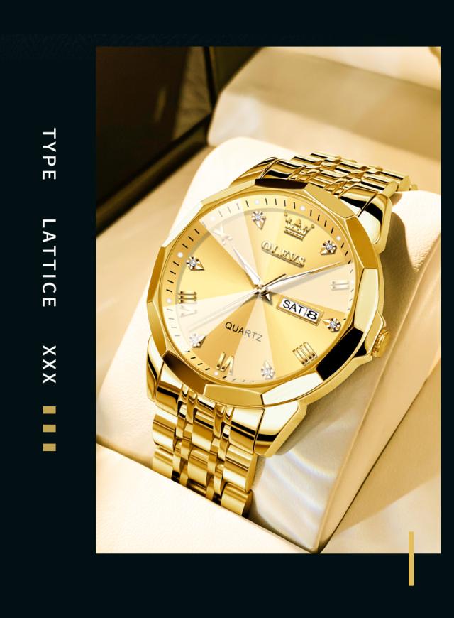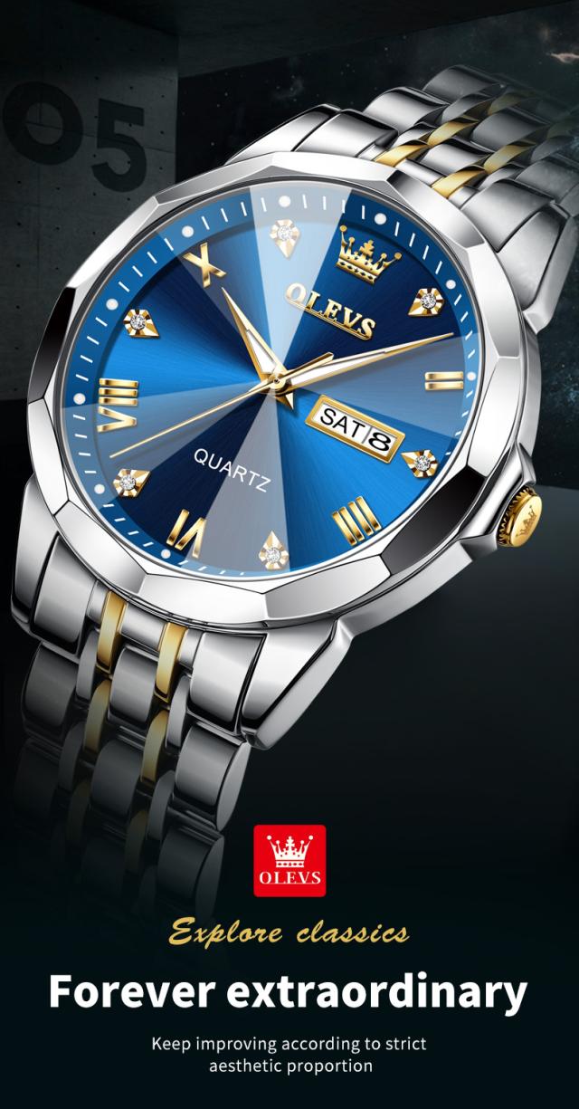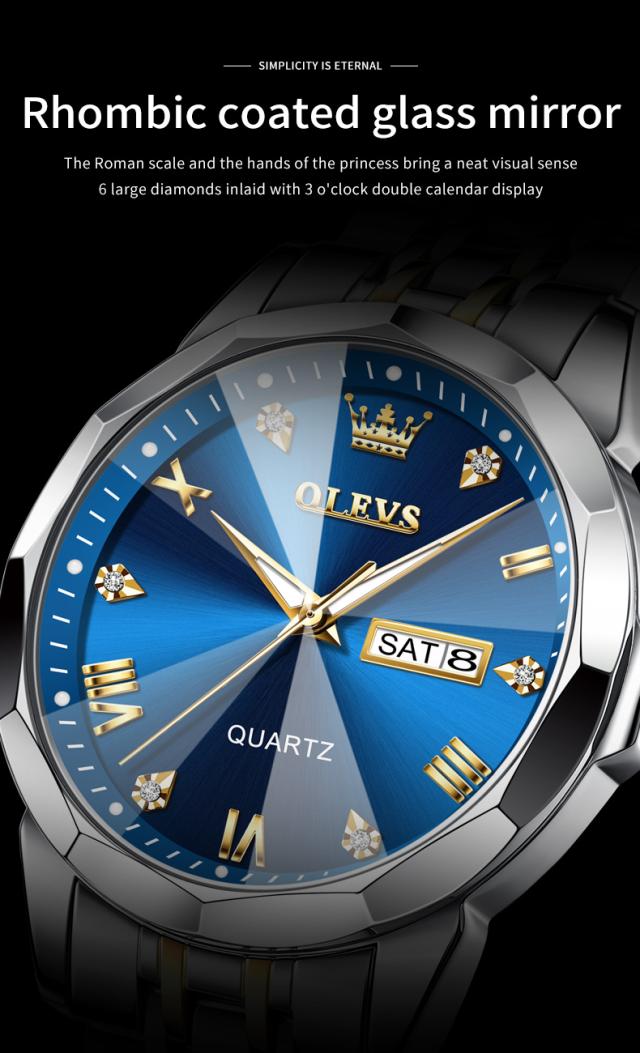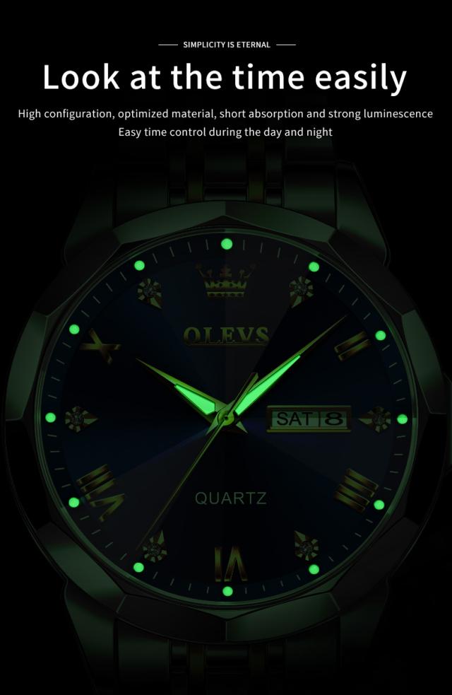 OLEVSメンズ腕時計菱形ミラーオリジナルクォーツ時計男性用防水発光ステンレス鋼メンズ腕時計日付曜日