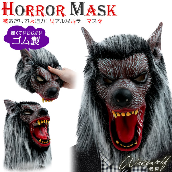 ホラーマスク 狼男 ワーウルフ 仮装 コスプレ ハロウィングッズ イベント パーティー 遊園地 テーマパーク ハロウィン 学園祭 肝試し 被り物 柔らかい 怖い おもしろい 肝試し お面 かぶりもの halloween リアルマスク SNS ドッキリ 舞台小物 お化け屋敷 送料無料
