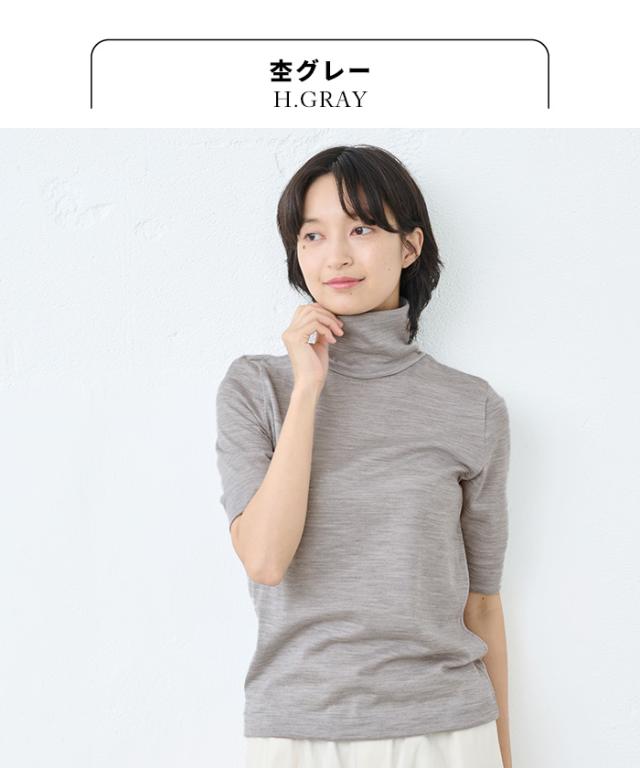 呼吸するウール100% 五分袖 タートル